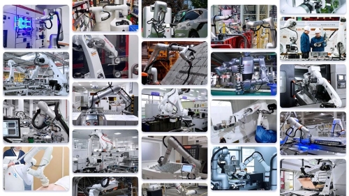 目前,珞石已发布3-45kg负载的全系列协作机器人。2024年,珞石一举拿下中国市场关节力控协作机器人细分赛道销量第一的桂冠。如今,珞石的机器人活跃在千行百业:不仅解锁了机器人在汽车变速箱、3C场景柔性线路板、白家电配管等场景的装配类应用,更带动了以力传感器为代表的国产核心零部件产业快速发展;同时,它们的应用已成功拓展至商业服务、医疗理疗等新兴领域,为智能生活注入了新的活力。